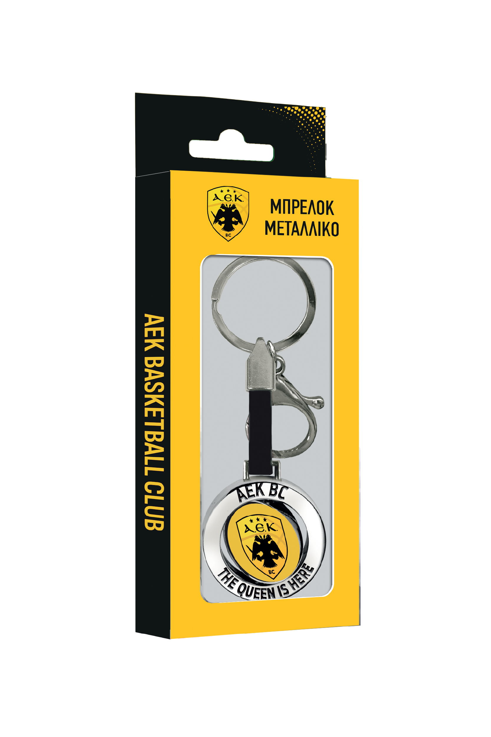 Μεταλλικό μπρελόκ της ΑΕΚ με περιστρεφόμενο μηχανισμό για εύκολη πρόσβαση στα κλειδιά σου. Φέρε την Ένωση παντού μαζί σου!