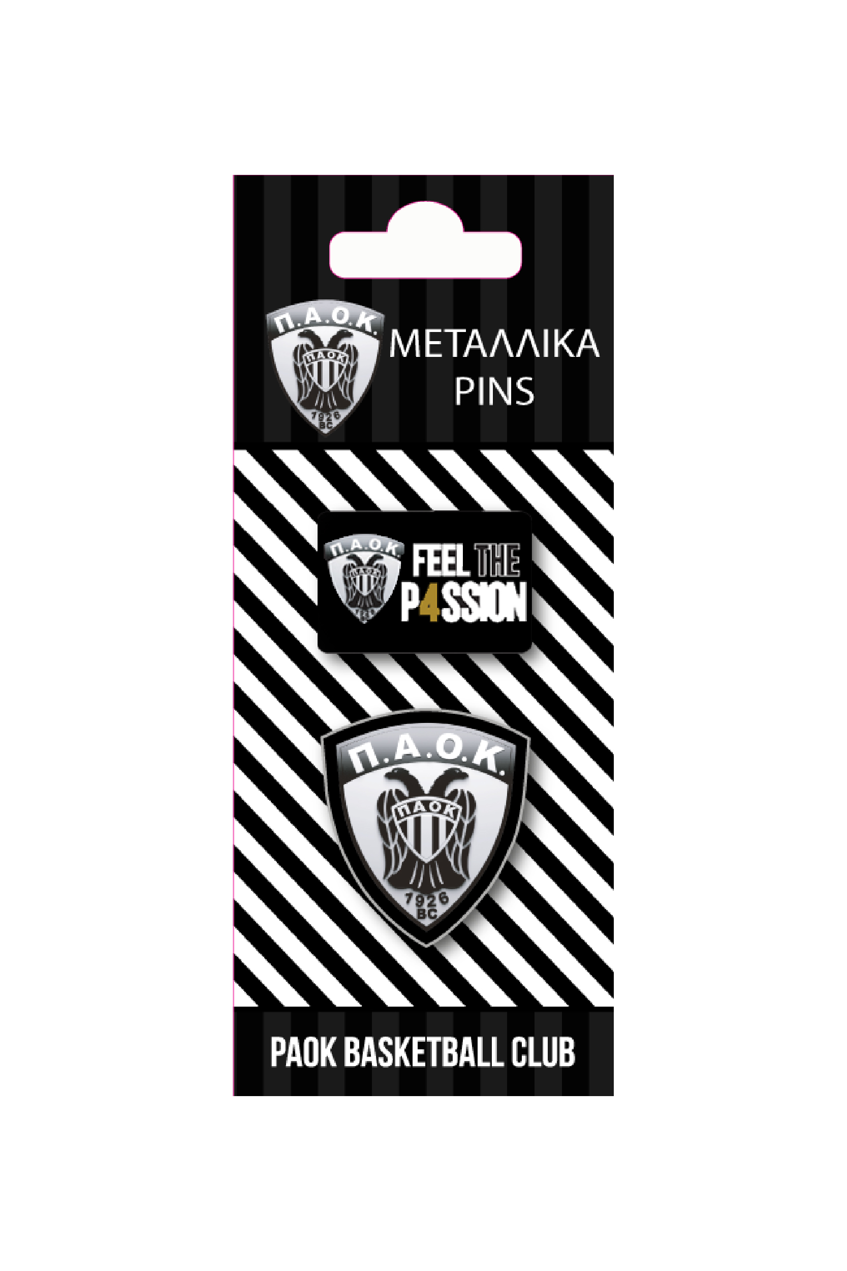 Σετ μεταλλικών pins του ΠΑΟΚ για να διακοσμήσεις τσάντα, σακάκι ή καπέλο. Το τέλειο αξεσουάρ για κάθε παθιασμένο οπαδό του Δικέφαλου.